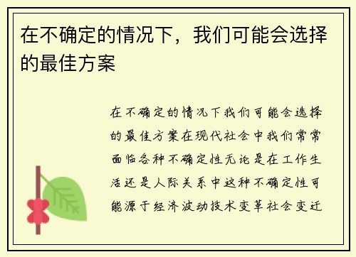 在不确定的情况下,我们可能会选择的最佳方案 在现代社会中,我们常常面临各种不确定性,无论是在工作、生活还是人际关系中。这种不确定性可能源于经济波动、技术变革、社会变迁等多种因素。在这种情况下,如何...